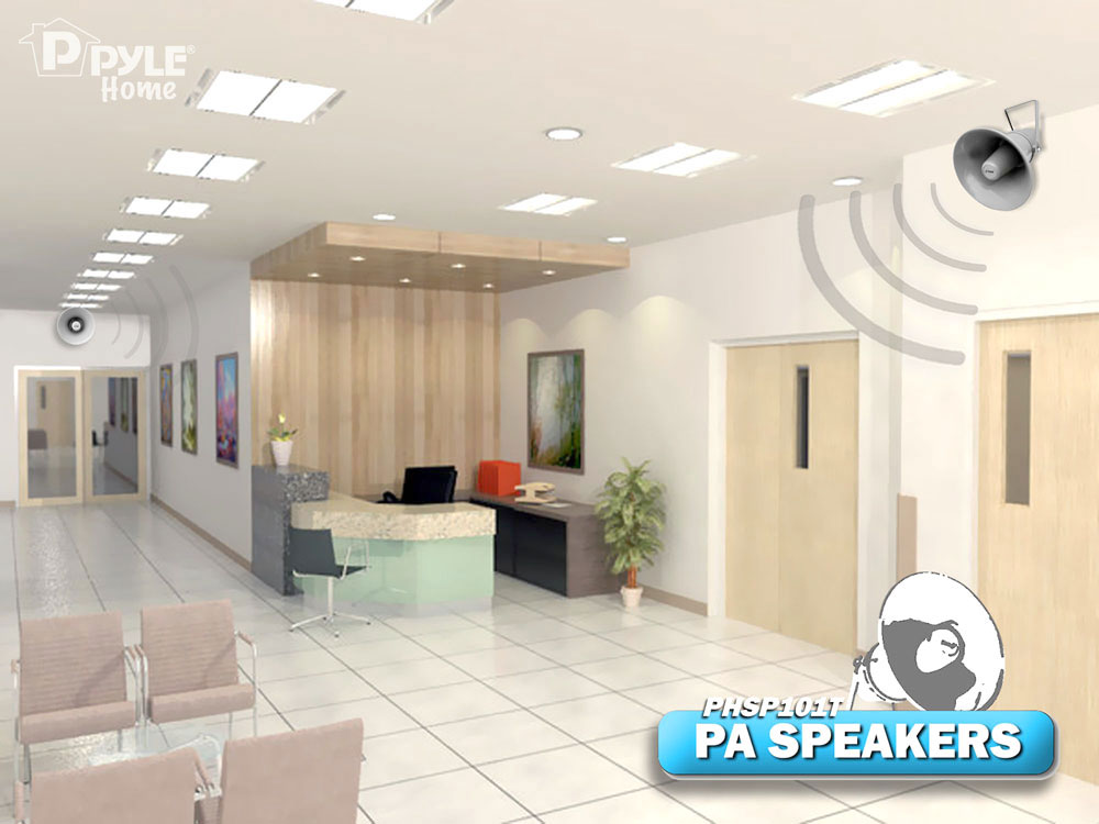 This 9.7' indoor/outdoor horn speaker is great for your 70 V audio system. Perfect for outdoor PA systems when you need your sound heard far and wide. This 20 watt speaker includes a 70 V transformer tappable at 20, 15, and 5 watts. Includes mounting bracket and hardware for easy installation. Let your voice be heard with the PHSP101T. Color: grey.