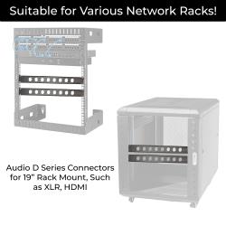 The 1 RU panel provides cutouts for eight D-series connectors. Use standard 4-40 screws (available separately) to connect any combination of cables you need for live events or studio productions.