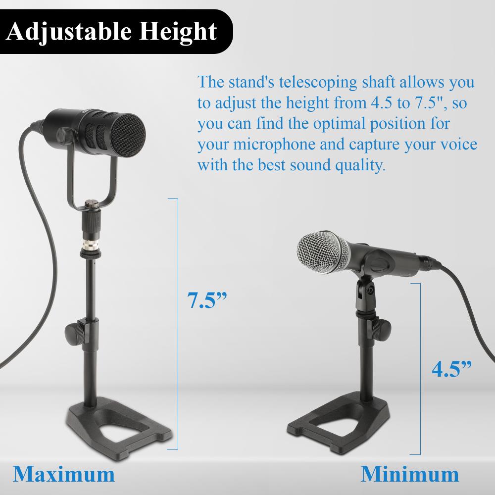 Adjustable Height: The stand features a telescoping shaft that extends from 4.5 to 7.5 inches, allowing you to position your microphone at the perfect height for optimal sound capture. Whether you're sitting at a desk or standing, you can easily adjust the height to suit your recording needs.