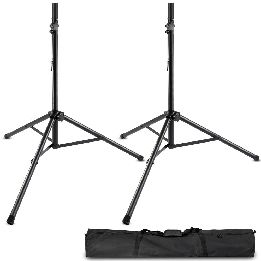 These height-adjustable steel speaker stands are designed to securely support portable and full-sized PA speakers for live performances, DJ setups, events, and installations. Built with rugged steel tubing, each stand supports speakers weighing up to 120 lb, providing dependable stability even in demanding environments such as crowded venues or outdoor settings.