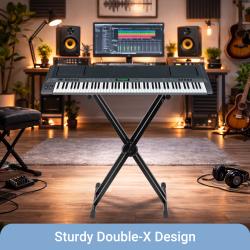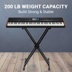 Its reinforced double-X frame enhances balance and reduces wobble during intense playing. Designed to support keyboards, synthesizers, and MIDI controllers up to 200 lb, this stand provides a secure platform for both lightweight and heavy professional instruments.