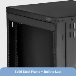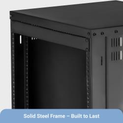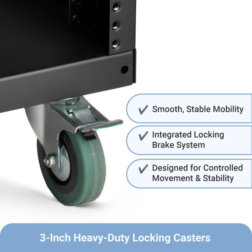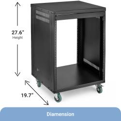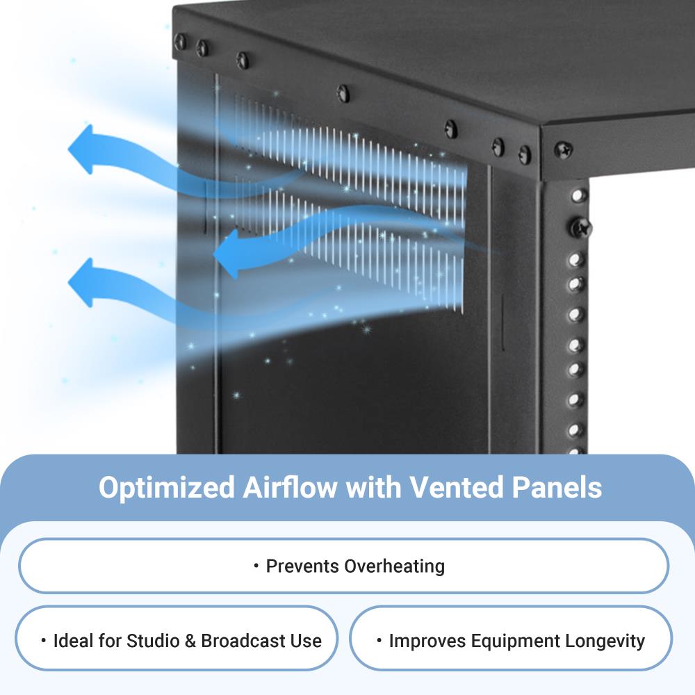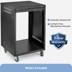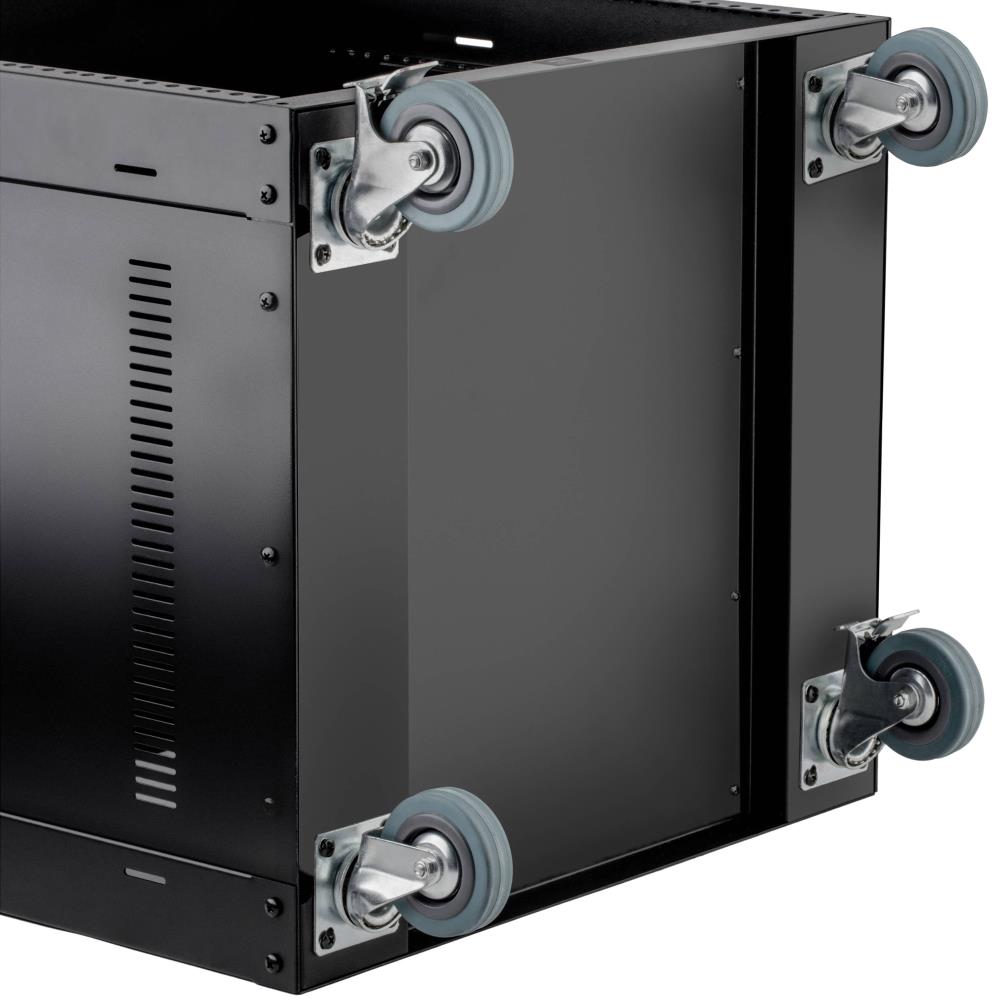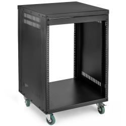Constructed from solid steel, the ERS-12U supports loads up to 440 lb, making it suitable for housing amplifiers, processors, and other heavy components. Vented side panels promote consistent airflow to help dissipate heat during operation. Three-inch heavy-duty locking casters allow smooth mobility when fully loaded and secure locking when positioned, giving you convenient rear access to your equipment.