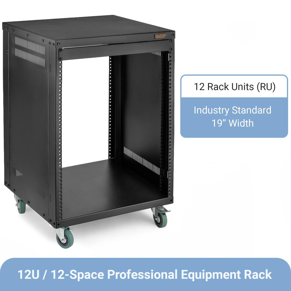 The Auray ERS-12U Steel Equipment Rack with 3" Casters is a durable twelve-space rack unit designed to support professional audio, video, and broadcast equipment. Built for studio and production environments, it provides a stable and organized solution for mounting rackmount gear while maintaining easy accessibility for installation and maintenance.