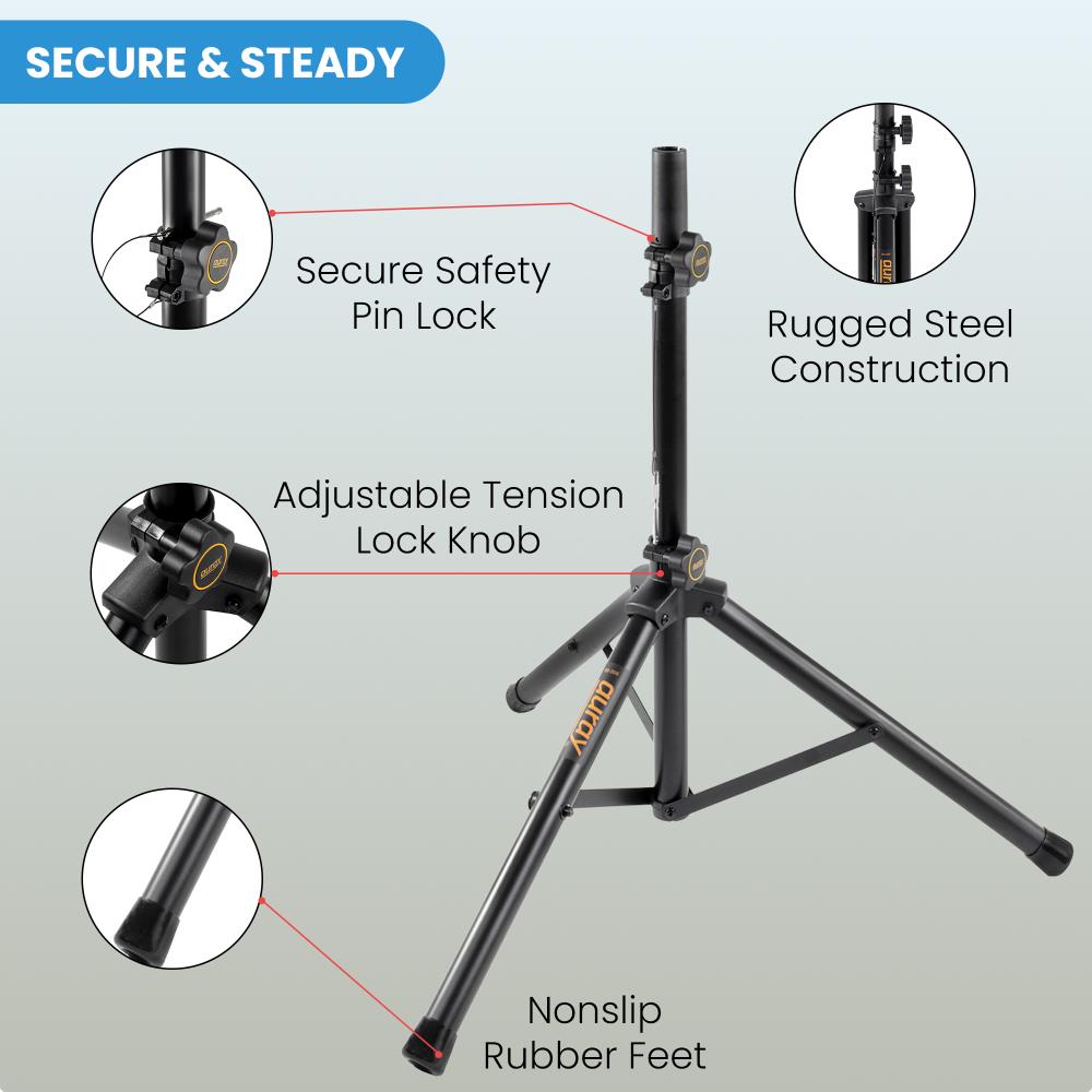 The telescoping center column allows for flexible height adjustment, making it easy to position your speaker for optimal sound coverage. An ergonomic locking knob enables precise adjustments, while preset height positions with a locking pin add extra security and confidence during use.