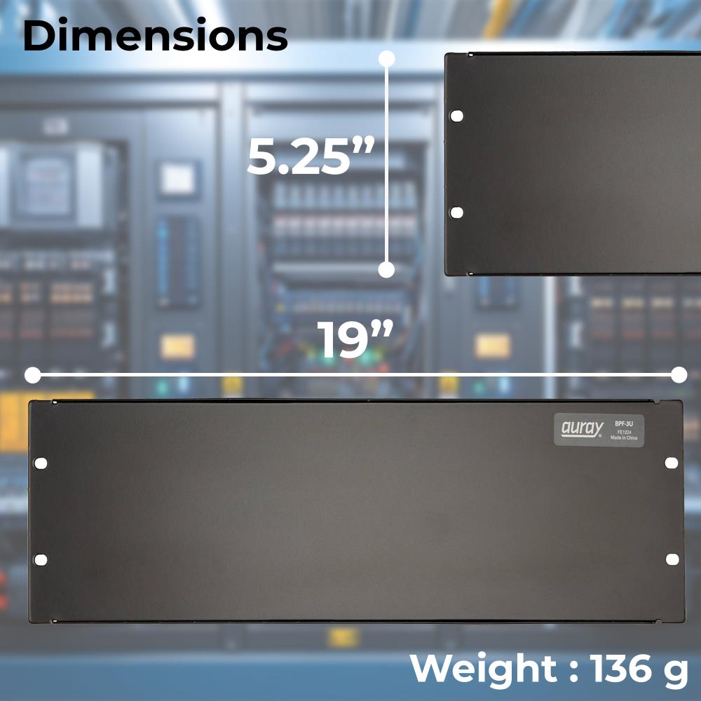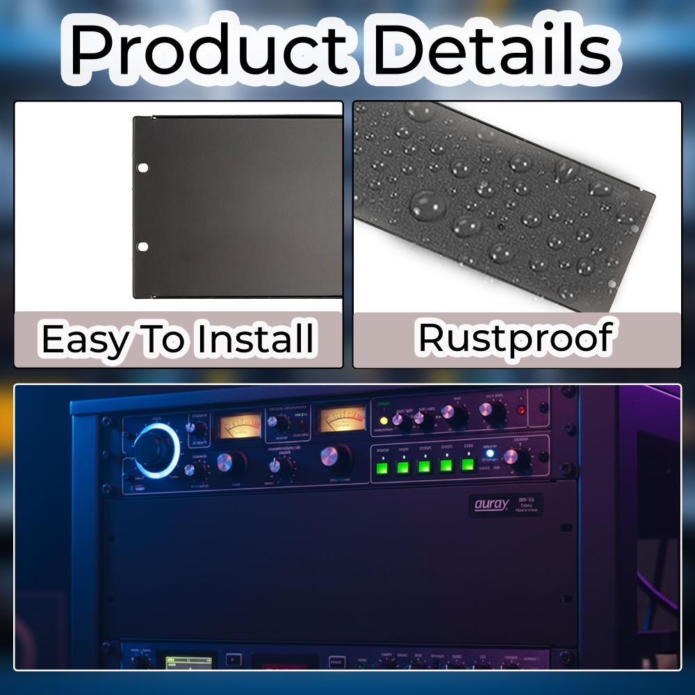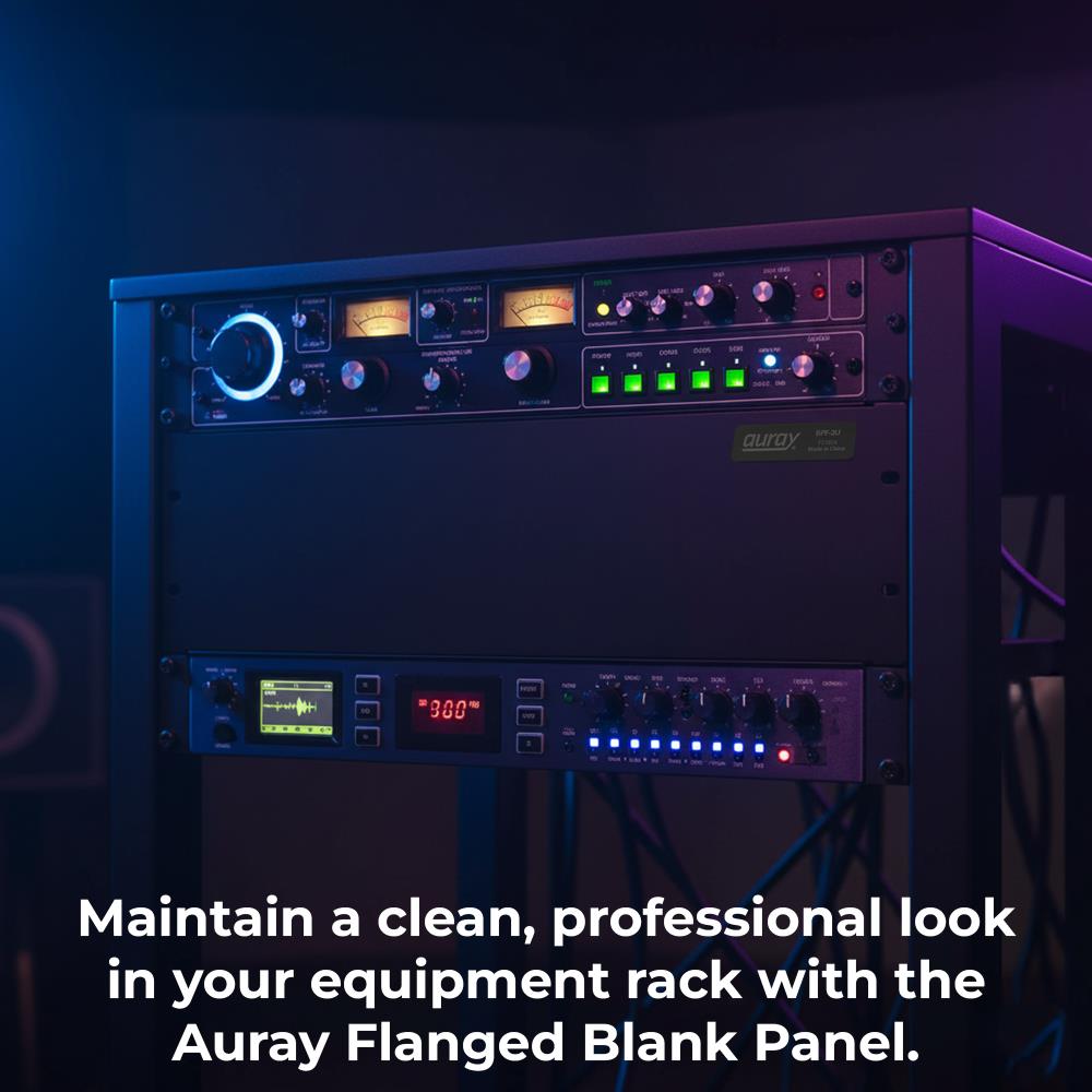 Maintain a sleek and professional appearance in your equipment rack with the Auray Flanged Blank Panel. Specifically designed to occupy 3 RU of unused rack space, this panel not only fills gaps but also enhances the overall organization and visual appeal of your setup. Perfect for both studio and stage environments, it ensures your gear remains neatly arranged and accessible while contributing to a clean, professional look.