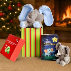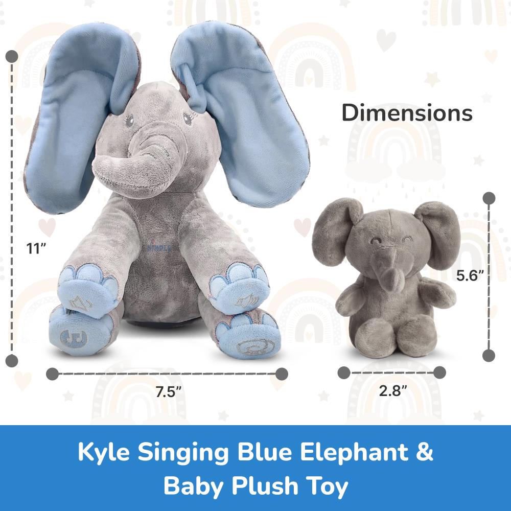 Kyle, the blue interactive elephant, plays music, flaps his ears, and moves to delight your child. He sings “Do Your Ears Hang Low.” He’s joined by a soft grey baby elephant plush — a non-singing companion perfect for little hands to cuddle. Together, they make a heartwarming duo for holiday smiles.