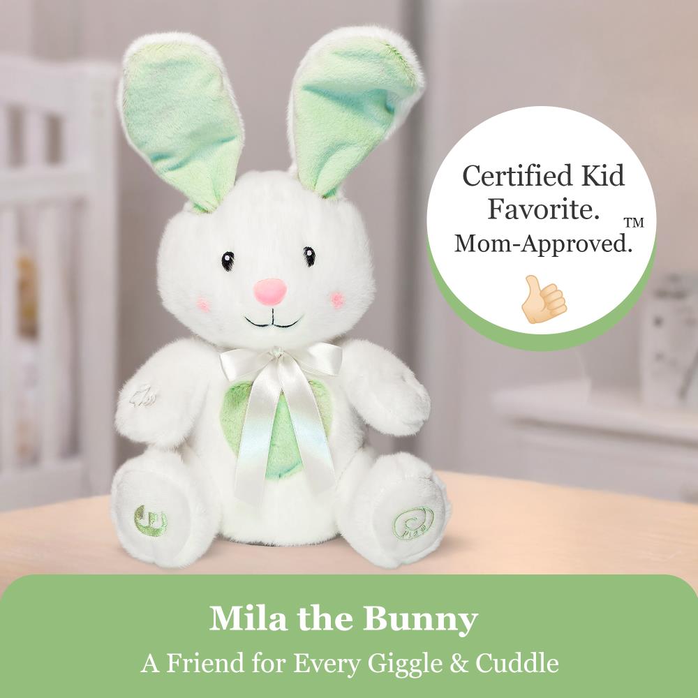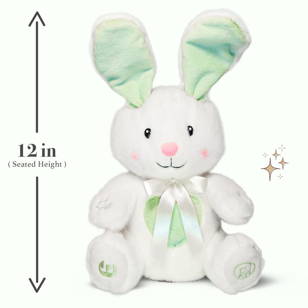 Bring home the magic of interactive play with the Dimple Peek-a-Boo Bunny Stuffed Animal, an animated and ultra-soft plush companion designed for infants and toddlers ages 0 and up. This adorable mint green bunny is more than just a stuffed animal — it’s a playful friend that sings songs, plays peek-a-boo, and creates joyful moments for little ones.