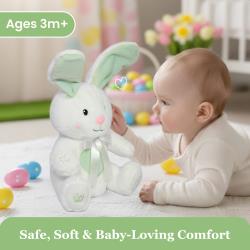 Whether placed in an Easter basket or given as a birthday, baby shower, or holiday gift, this interactive bunny plush makes a thoughtful present for babies and toddlers. Its charming design and engaging features create a lovable companion that children will enjoy for years.