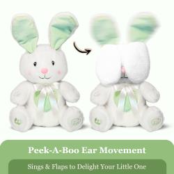 Dimple Peek-A-Boo Bunny Toy – Interactive Singing Bunny Plush Stuffed Animal with Moving Ears & Songs – Animated Easter Bunny Plush for Toddlers – Baby Easter Basket Stuffer Gift for Kids Boys & Girls Ages 0+, Mint Green