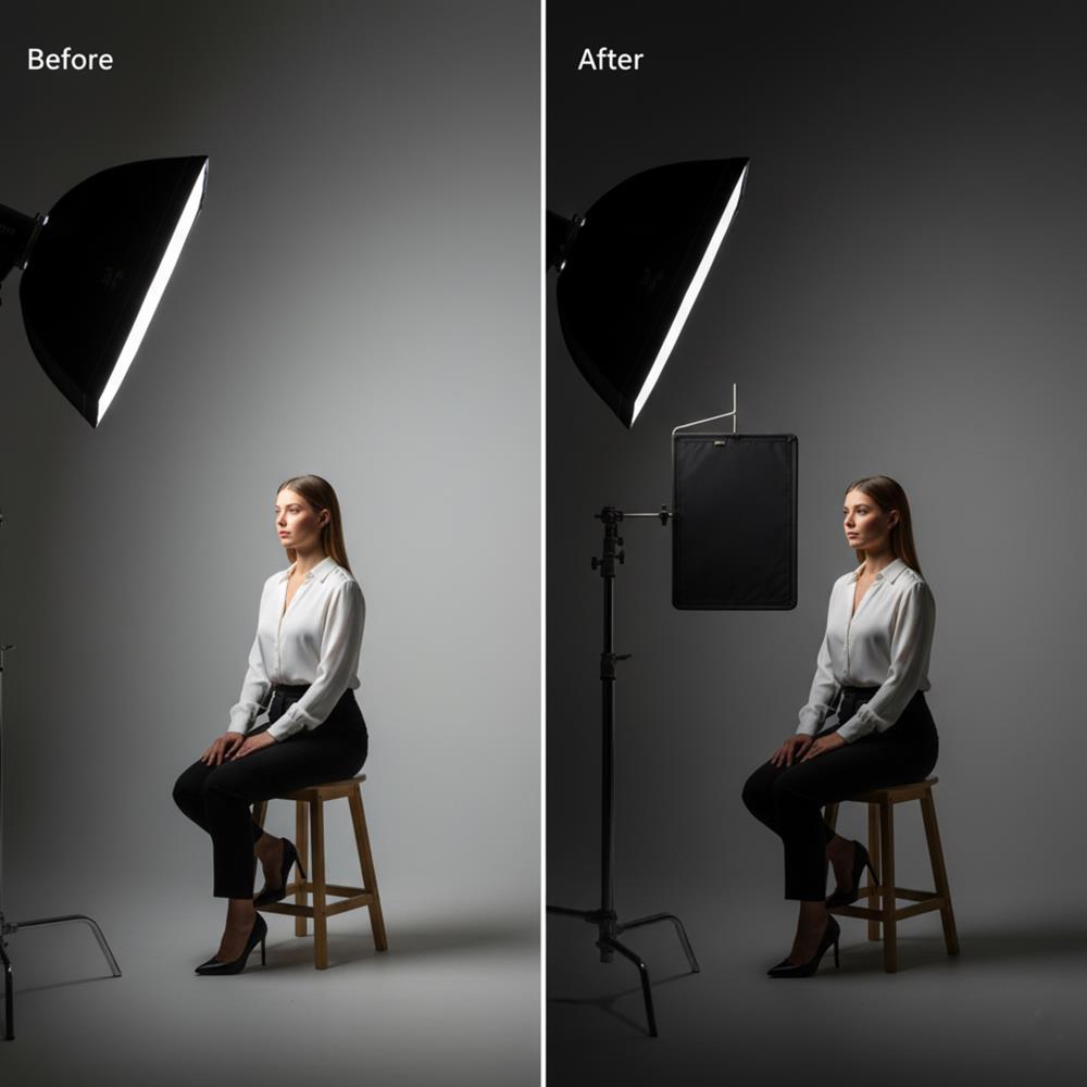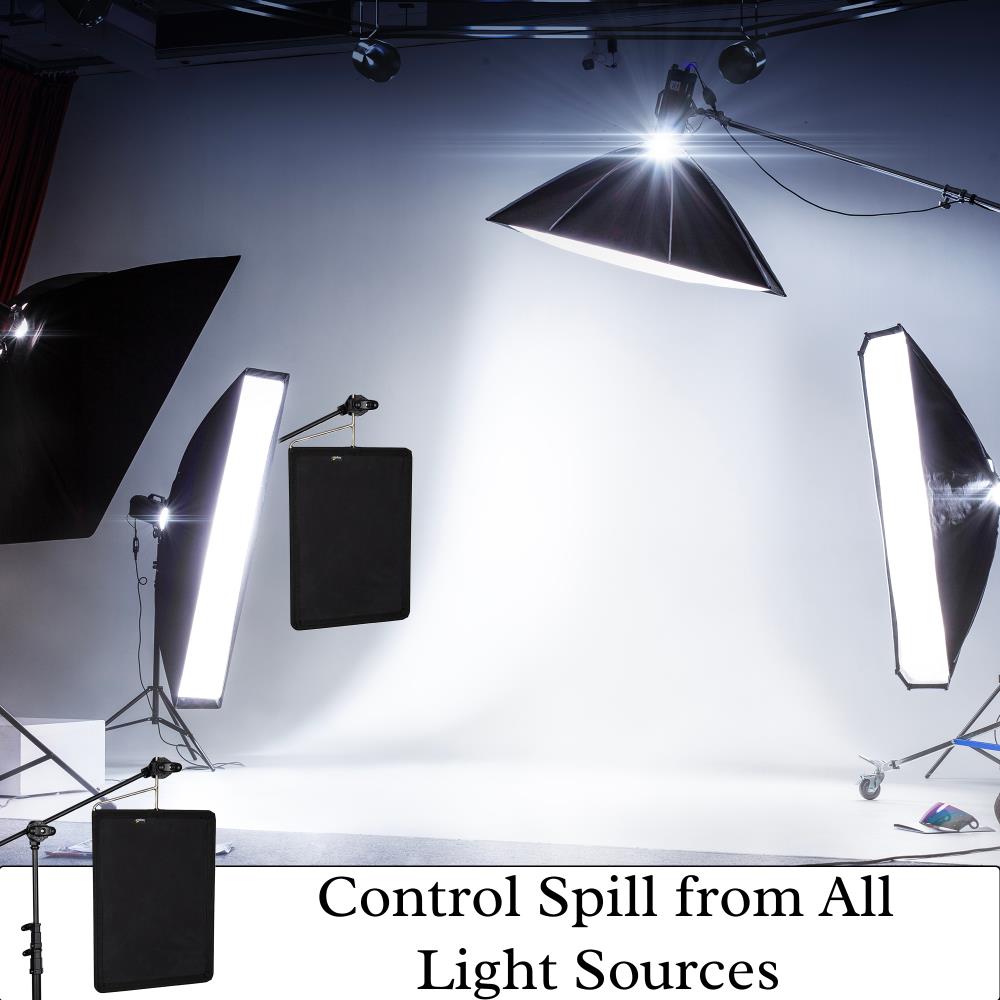 Made from high-quality black Duvetyne fabric, this light blocker completely prevents light from reaching unwanted areas, helping you create sharp shadows, reduce glare, and improve contrast for more dramatic and polished images. The fabric is NFPA 701 flame-retardant rated, ensuring safe use even near hot studio lights and LED panels.