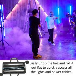TheGenaray Light Bagquickly unzips and rolls out flat so you can easily access all the light tubes and power adapters. Grip the comfortable handles with the large-padded handle wrap, or sling the handles over your shoulder. The Cordura exterior fabric offers water resistance for protection against the elements.