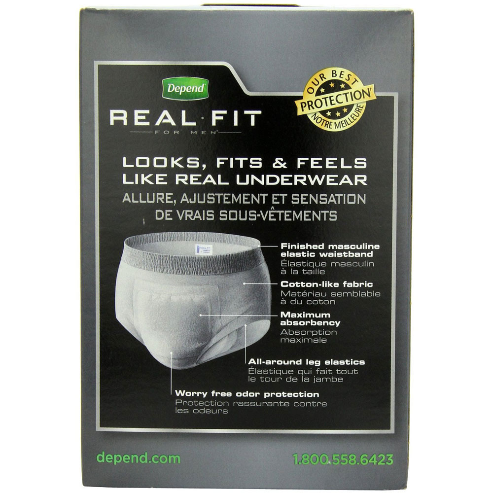 Depend for Men Real Fit Briefs are unique pull-on style protective underwear that look, fit and feel like real underwear. With innovative features like a slim-fit, cotton-like fabric, and an elastic waistband, you can wear Real Fit briefs under all your favorite clothes and stay confident with our best protection.