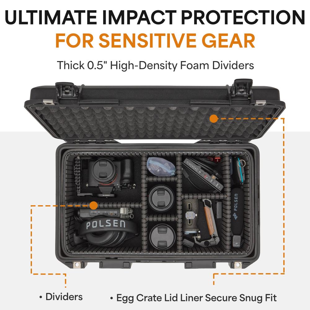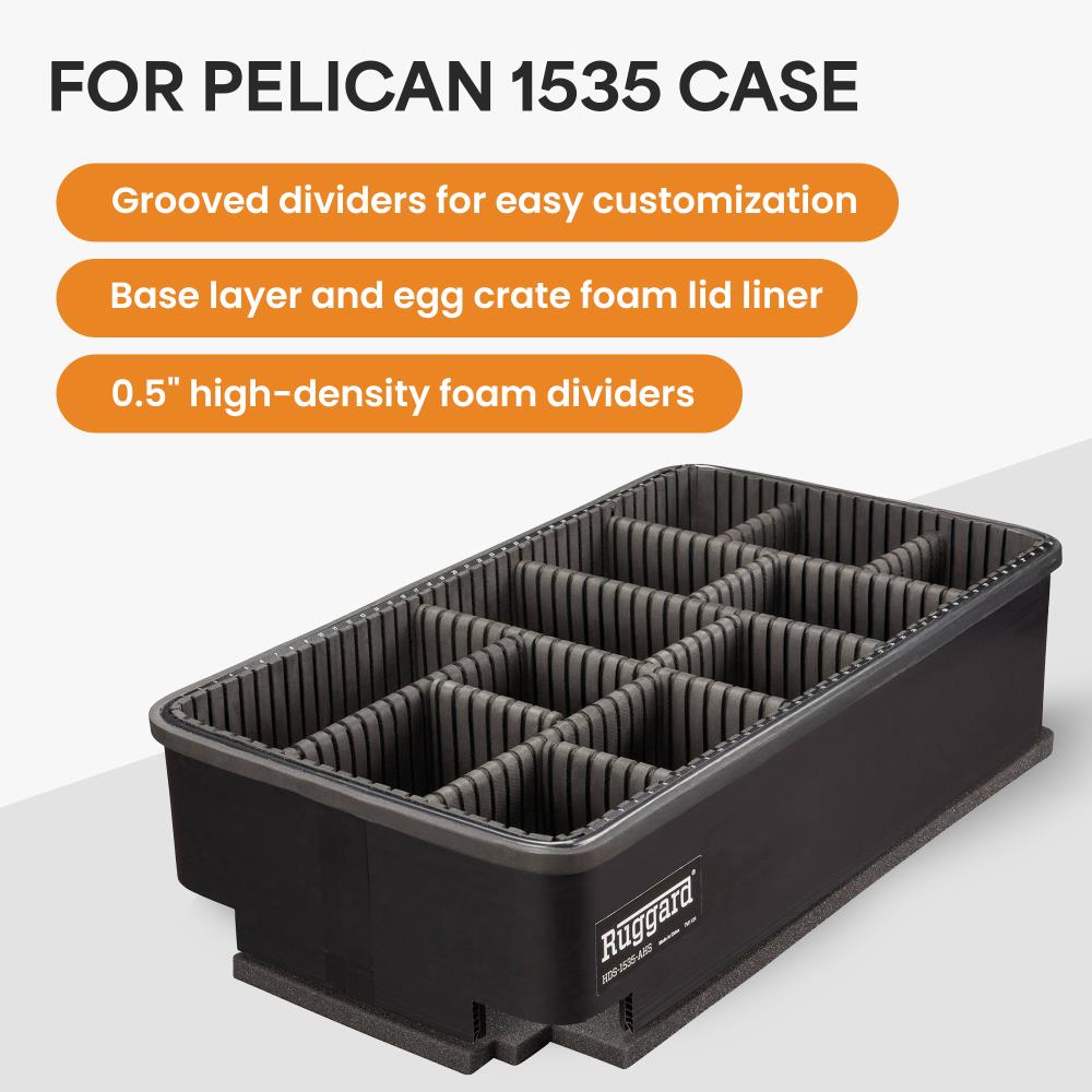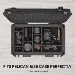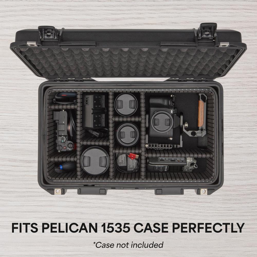 The Ruggard Adjustable Hard Divider Insert is designed specifically for the Pelican 1535 Hard Case, offering a flexible, protective interior for professional photographers and videographers. With grooved dividers, you can customize your case without cutting, while thick 0.5" high-density foam dividers absorb shocks. The egg crate lid liner and 1" base layer provide 360° protection for delicate equipment.