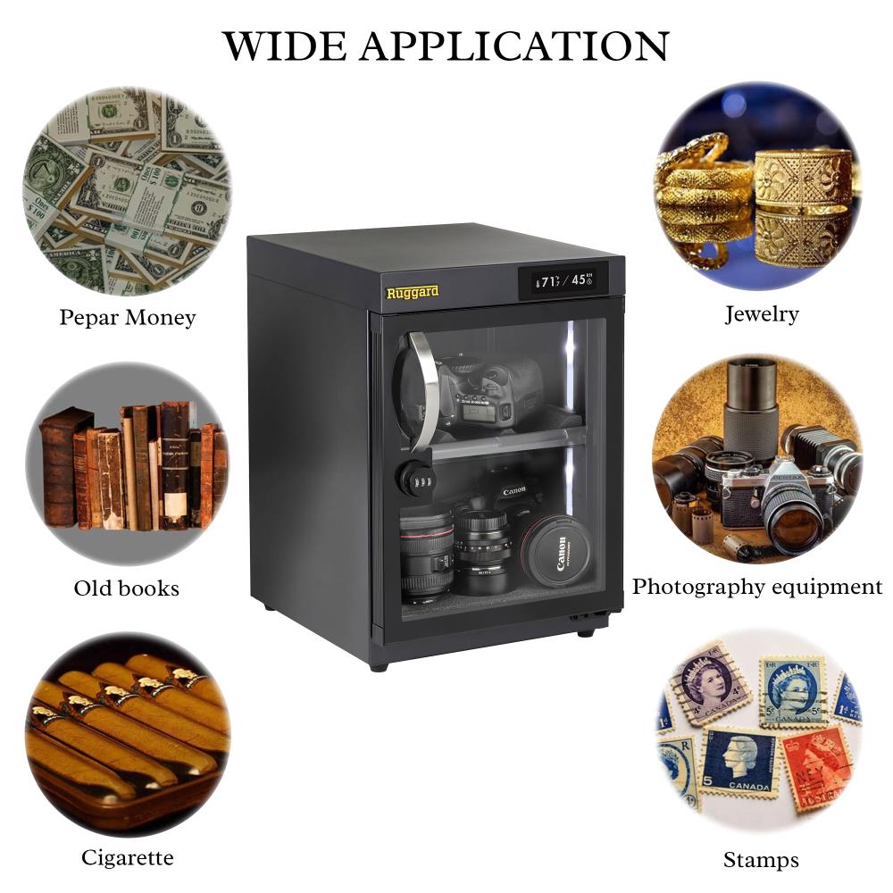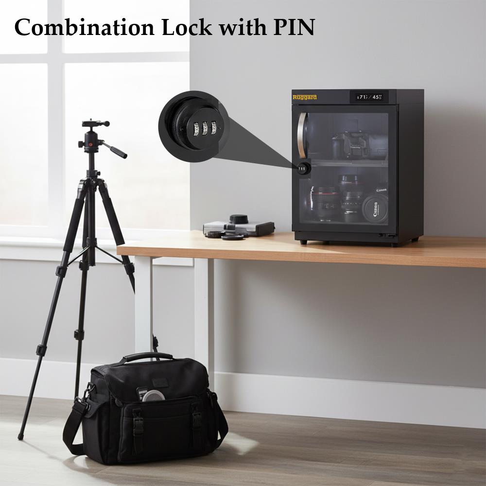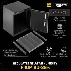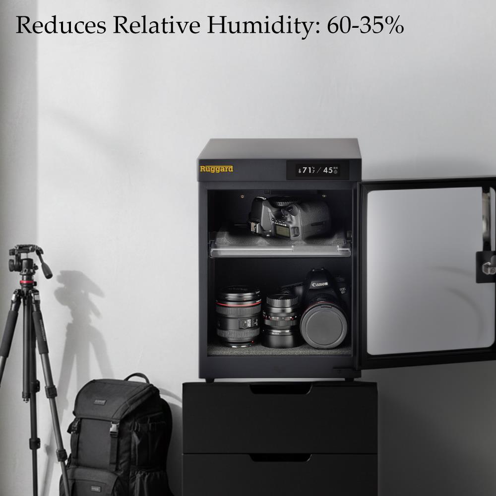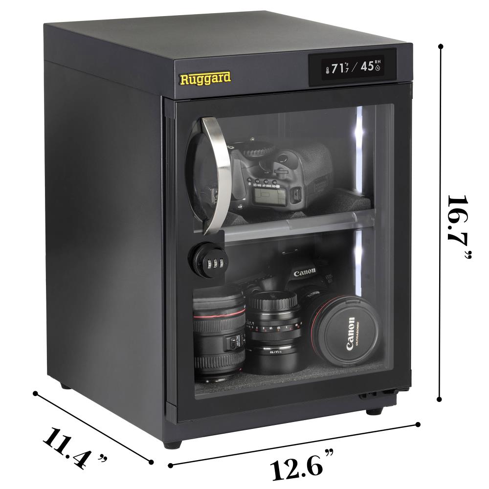 Safeguard your valuable gear with the Ruggard EDC-30LT, an electronic dry cabinet that ensures ideal humidity control and secure storage for delicate items like photographic equipment and electronics.