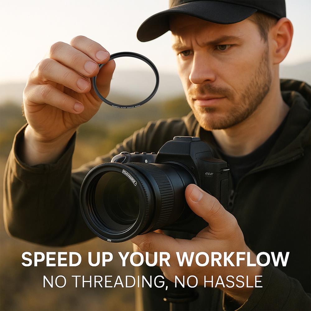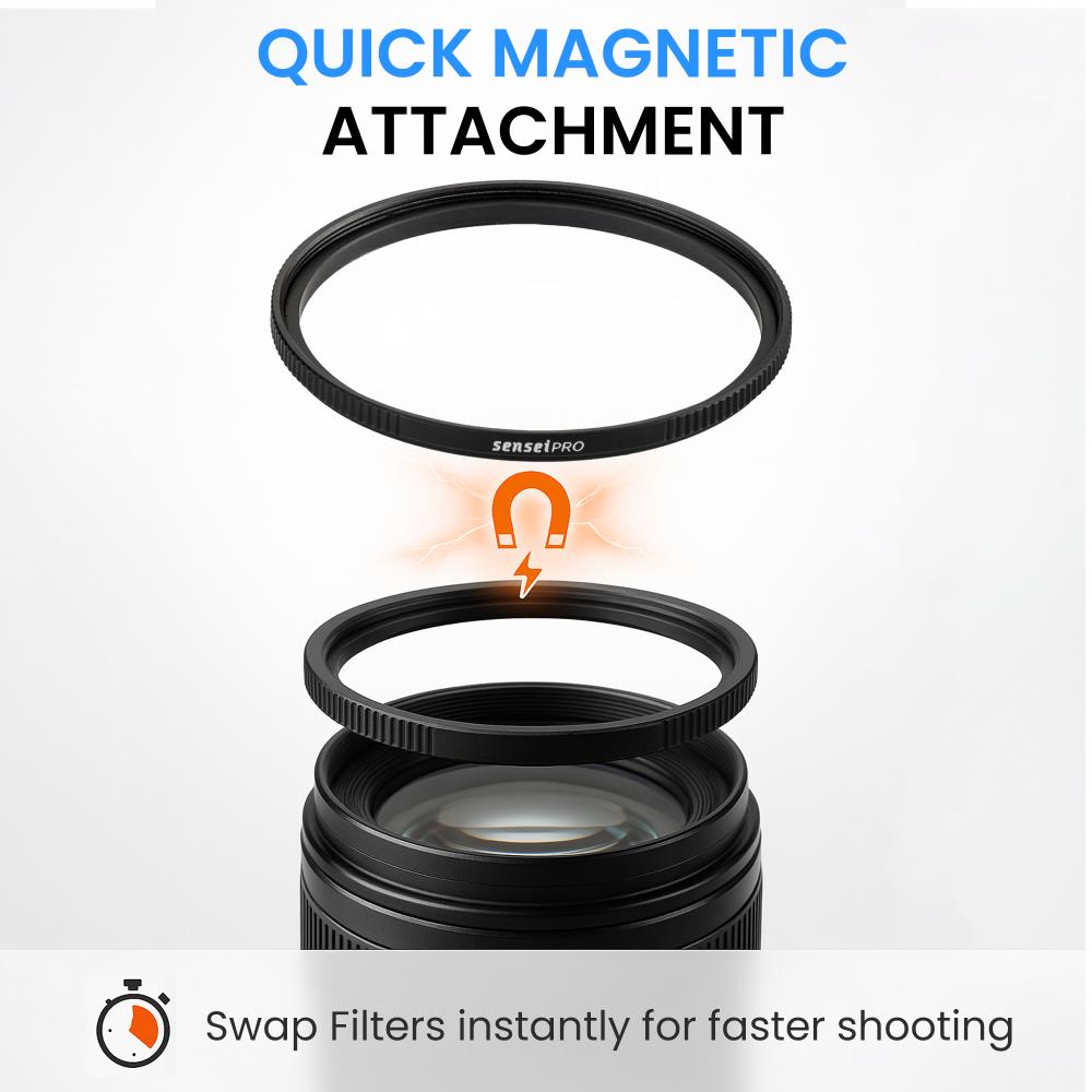 Part of the Sensei Pro Magnetic Filter System, this 67mm Magnetic Filter Adapter Ring is used to quickly attach and remove filters or polarizers without slowing down your photo session workflow. Changing a filter to a polarizer or vice versa is seamless. Connect the adapter ring to any desired filter or polarizer and attach Sensei Pro's Magnetic Lens Adapter Ring to the lens. The filter can then be magnetically attached and removed in seconds.