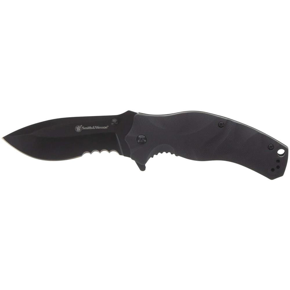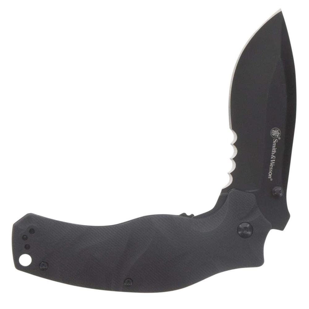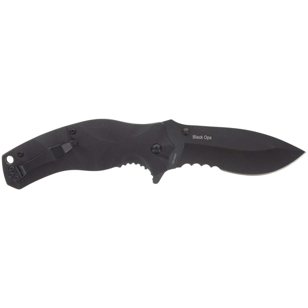 When reliability, speed, and control matter most, the Smith & Wesson 3.5″ Black Ops Recurve Folding Knife delivers. Designed for everyday carry, tactical readiness, and outdoor durability, this folding knife is built to perform in any situation. The partially serrated drop point blade made from 8Cr13MoV stainless steel offers excellent edge retention and cutting power, perfect for slicing, piercing, and tough utility tasks.