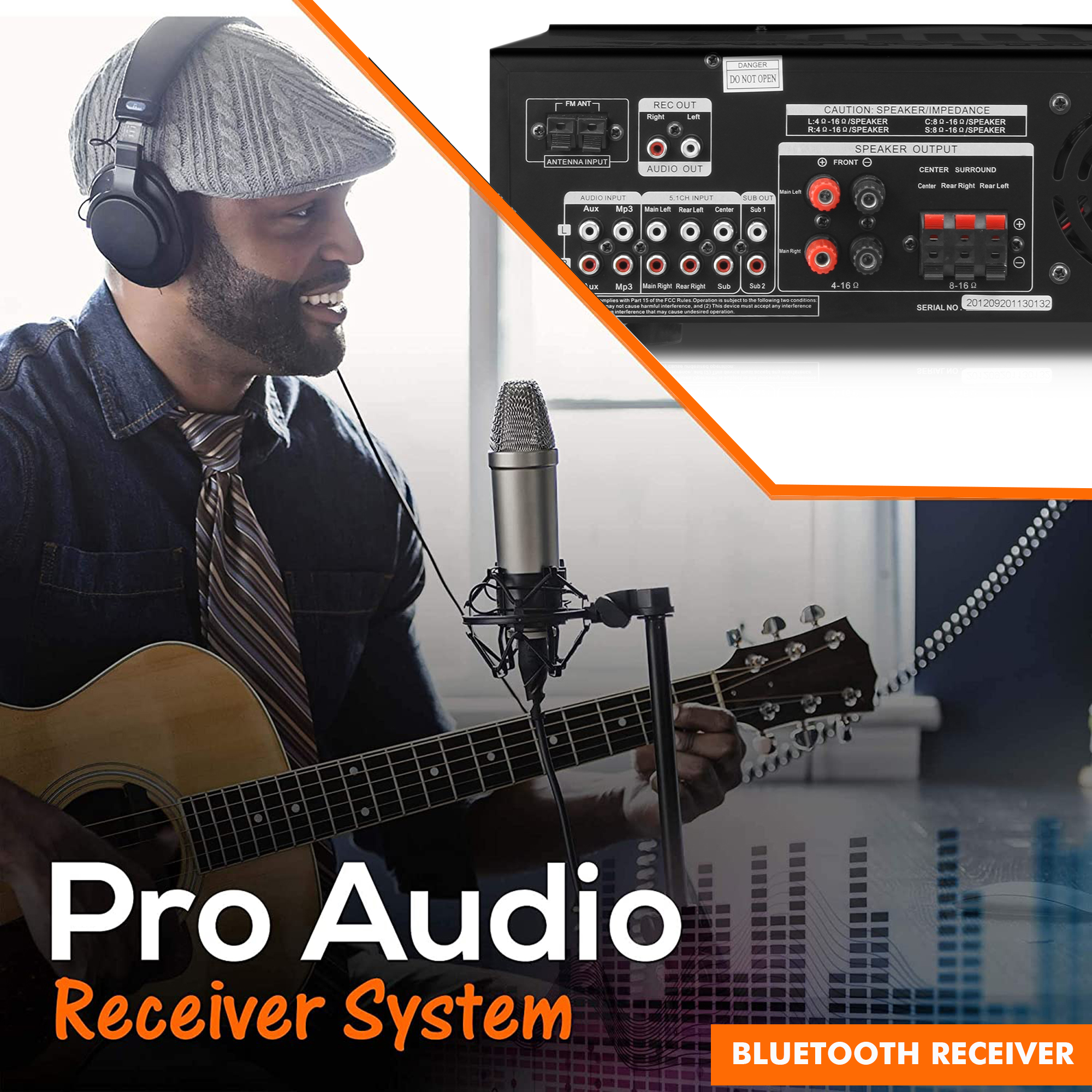 Item - Technical Pro Professional 1500 watts Power Bluetooth Receiver with Built-In Equalizer, 5.1 Channel Home Theater, Dual Mic Inputs, 5 Band EQ & FM Radio