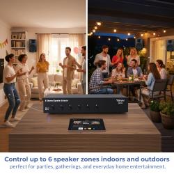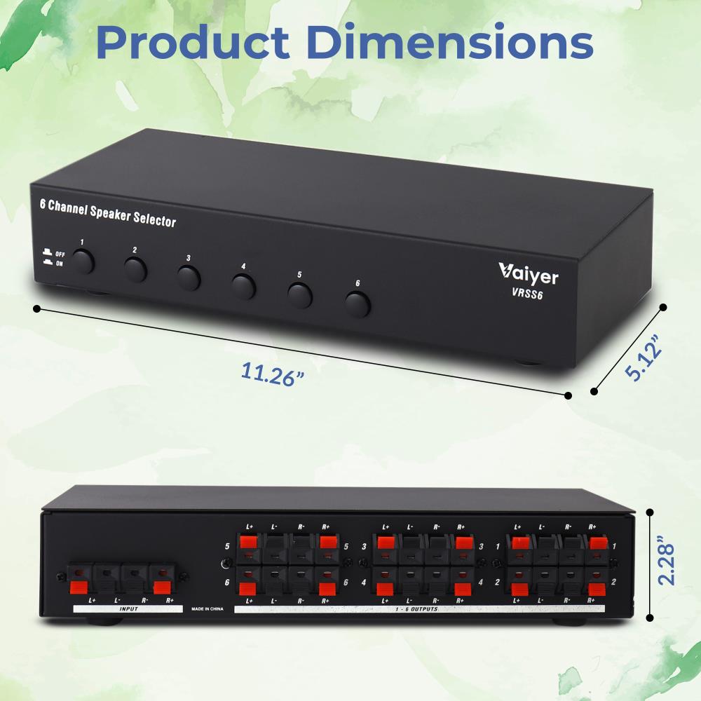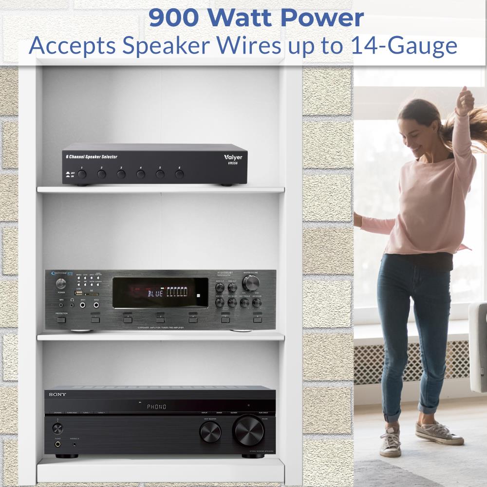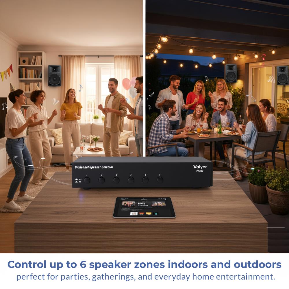 Expand your home or office audio system with the Vaiyer VRSS6 6-Channel Speaker Selector, designed for those who need versatile, multi-room sound without the complexity of additional amplifiers. This professional-grade switch box connects up to six pairs of speakers to a single amplifier, giving you full control over which channels are active at any time. From entertaining guests indoors and outdoors to running background music in a café, office, or restaurant, the VRSS6 delivers effortless sound management.