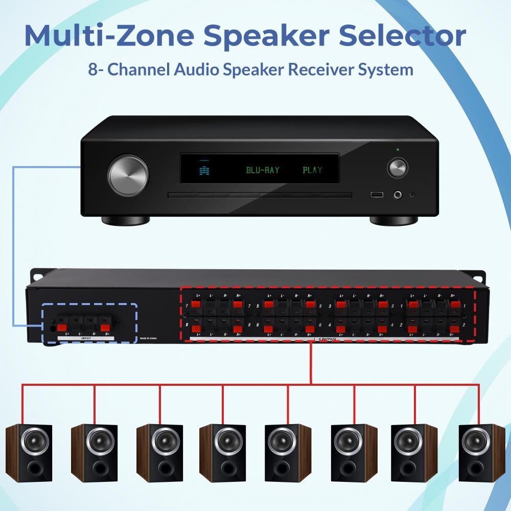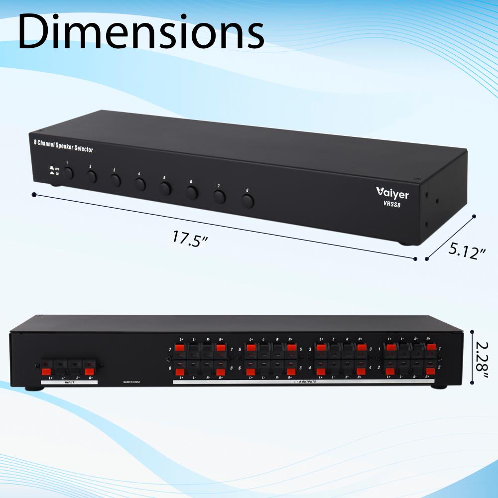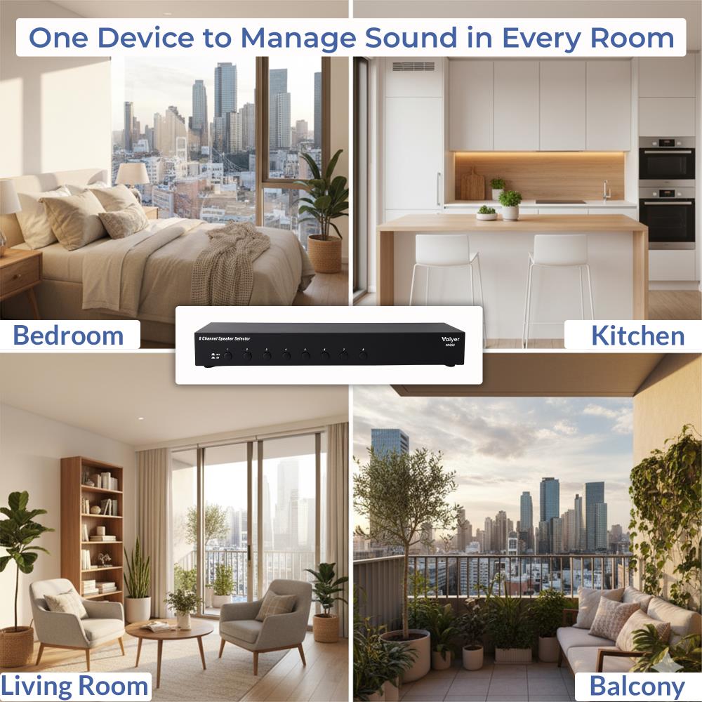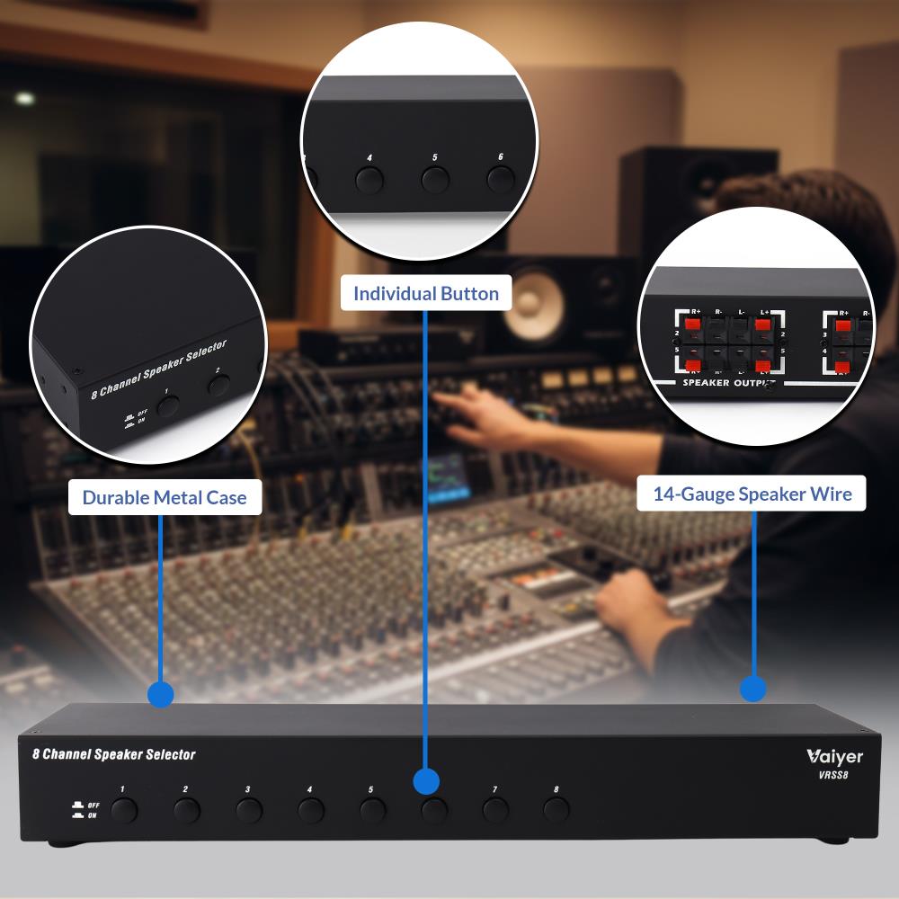 For serious audio enthusiasts and professional installations, the Vaiyer VRSS8 8-Channel Speaker Selector provides unmatched flexibility and control for whole-house or commercial sound systems. Designed to manage large-scale multi-channel audio setups, the VRSS8 connects up to eight pairs of speakers to a single amplifier or receiver, making it the ultimate hub for home theaters, restaurants, offices, or entertainment venues.