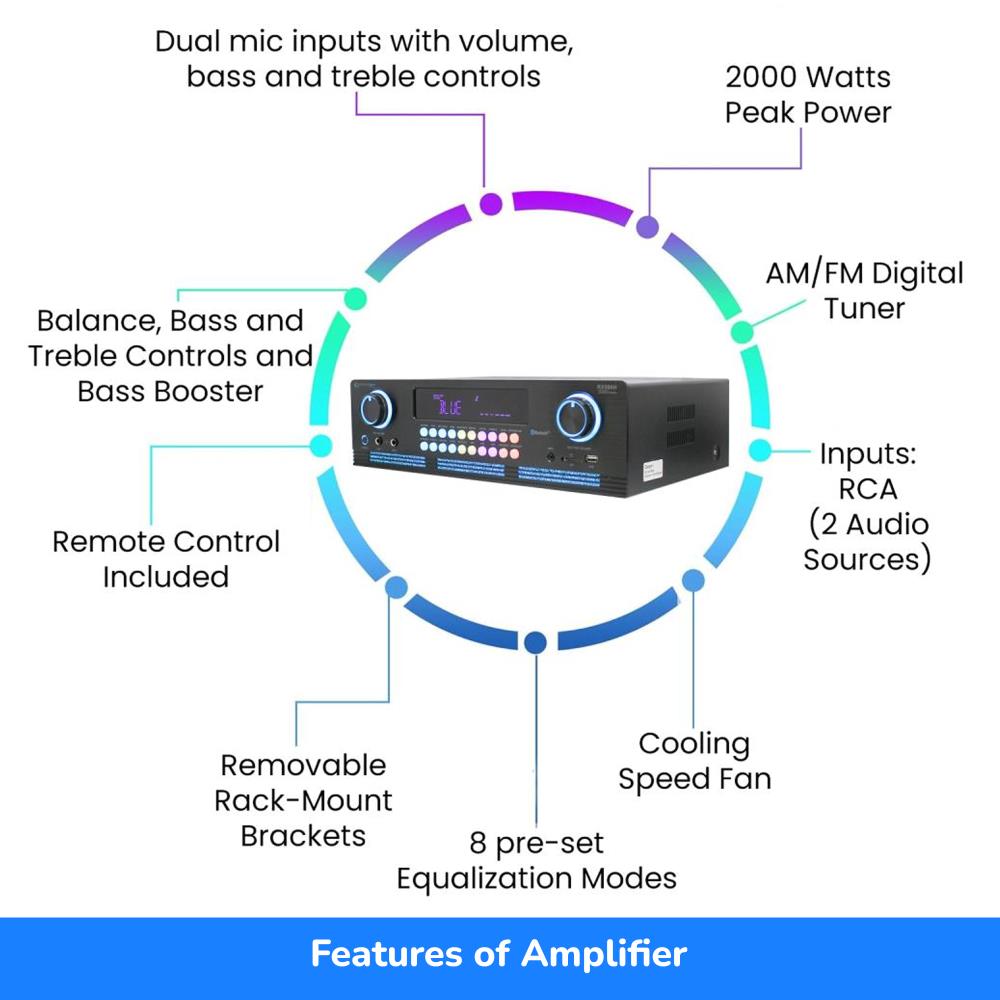 (1) 2000 W Digital Bluetooth Hybrid Amplifier Preamp Tuner
