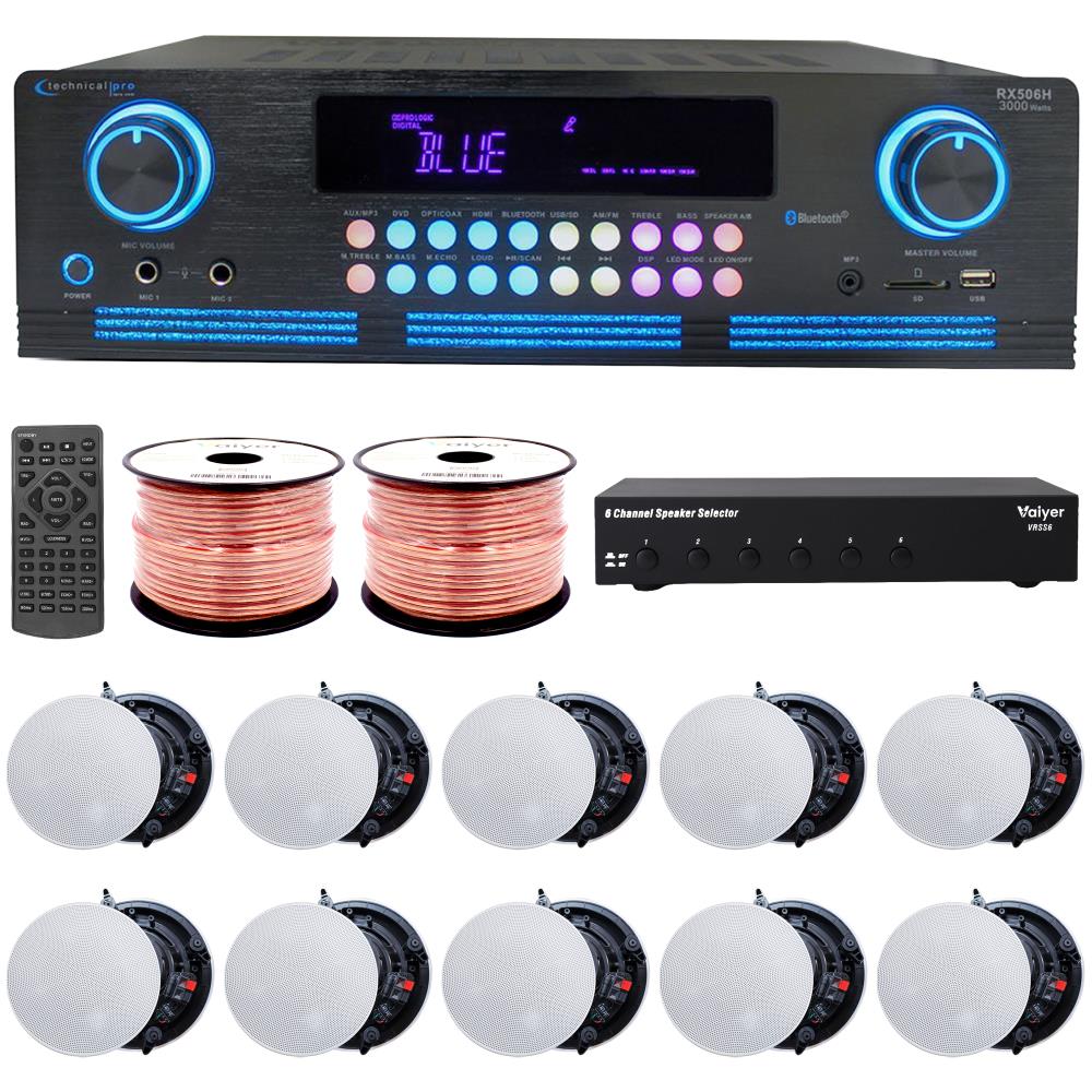 1000 Watts Home System w/USB and SD Card Inputs, (Qty 6) 6.5 flush mount In-Wall / In-Ceiling Stereo Speakers, Mic w/10 Ft Cable