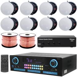 Technical Pro 6 Zone 6000 W Bluetooth Hybrid Amplifier Tuner Kit w/ 5.25" (8 QTY) 175 W in-Wall in-Ceiling Framed 2-Way Speakers w/ Remote Control, Home Theater System - For Office, Living Room