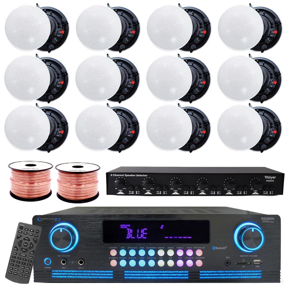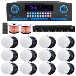 Technical Pro 1500W Bluetooth Home Stereo Receiver w/ (8 QTY) of 5.25" 175W Flush Mount in-Wall in-Ceiling 2-Way Speakers Dual Mic & Remote Included - Home Theater System For Office, Living Room