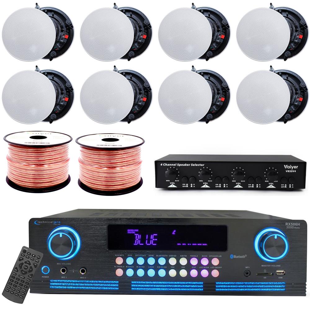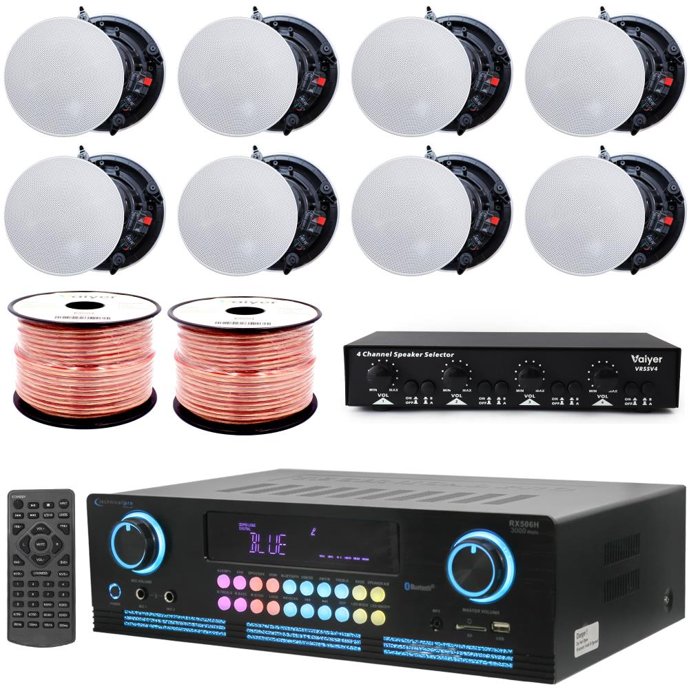 Free ShippingTechnical Pro 1000 W 4 Channel Bluetooth Home Stereo Receiver Bundle w/ 6.5" (6 QTY) of 200 W Flush Mount in-Wall in-Ceiling 2-Way Frameless Speakers, Home Theater System- Office, Living Room