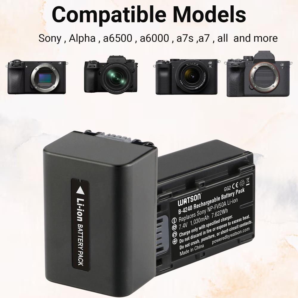 Whether you're shooting a wedding, a documentary, or a family event, the Watson NP-FV50A Lithium-Ion Battery is the ideal choice for those who need extended shooting times. Its durable construction and high capacity give you the confidence to capture every moment without constantly switching out batteries.