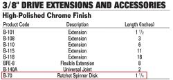 Ideal for technicians and mechanics, this spinner disc supports smoother handling in tight spaces and repetitive applications where quick engagement can save time. Built with professional use in mind, it is a dependable addition to any 3/8" drive tool setup.